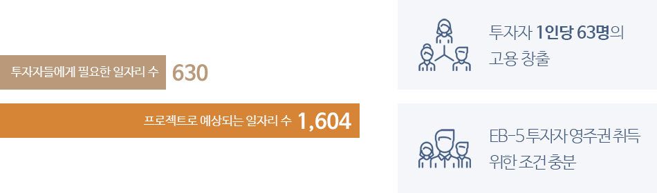 1순위 담보권, 개발사 완공보증, I-526E 거절시 환불보장, I-956F 승인되어 이민국 빠른 수속, 투자금 확보, 짧은 투자기간, 높은 자기자본비율, 인허가 완료, 공사 이미 착공 |